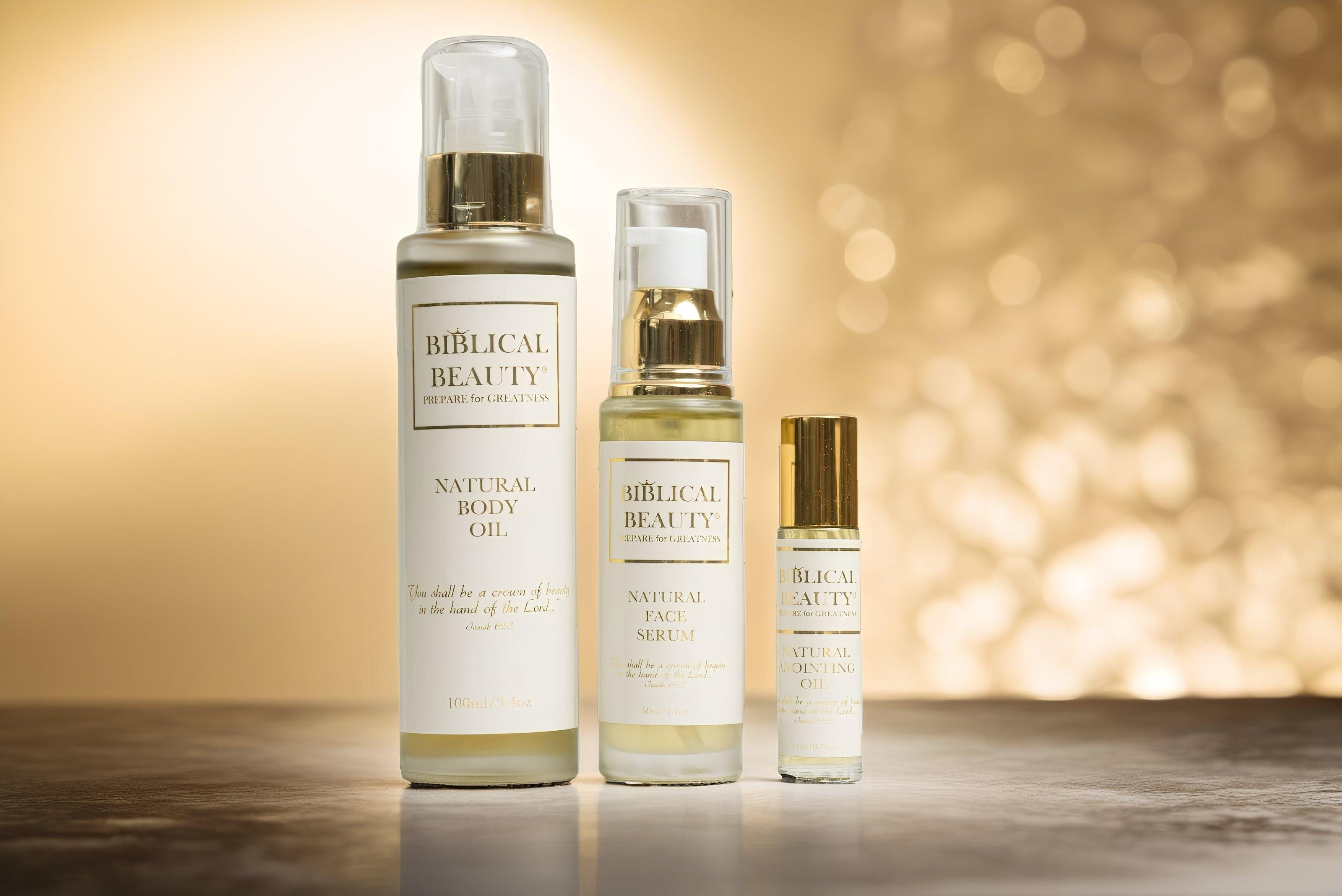 Biblical Beauty products are made with natural, botanical blooms with ingredients from ancient biblical texts. These ingredients are carefully selected for their purity, performance and scientifically documented ability to holistically recover from damage and preserve the skin.